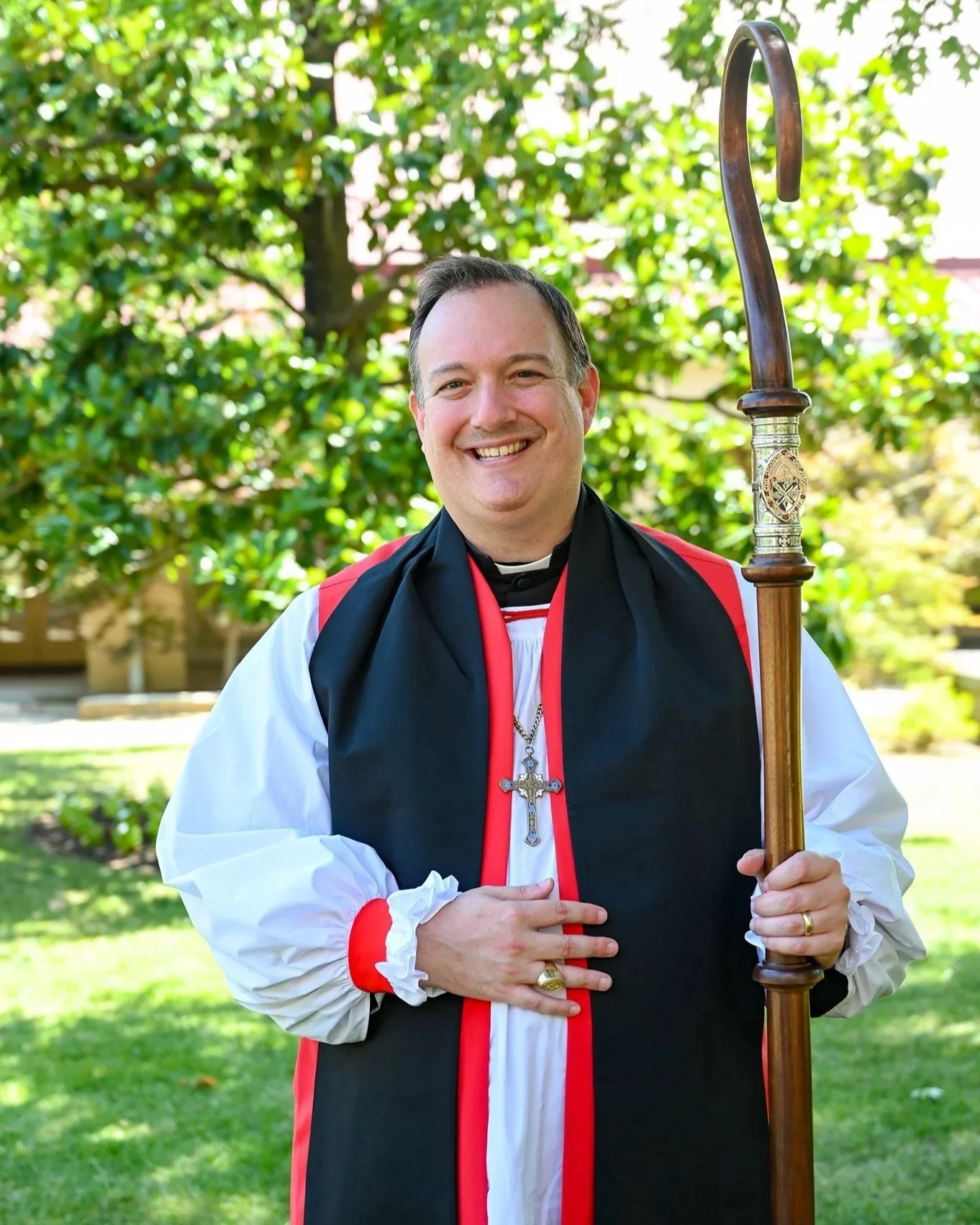 Elected the sixth bishop of the Episcopal Diocese of Oklahoma on December 14th, 2019, he was consecrated as Bishop Coadjutor on May 30, 2020, at a small ceremony in the early days of the COVID pandemic, and seated as Bishop Diocesan on August 8th, 2020 (the Feast of Saint Dominic), succeeding the Right Reverend Edward Konieczny.